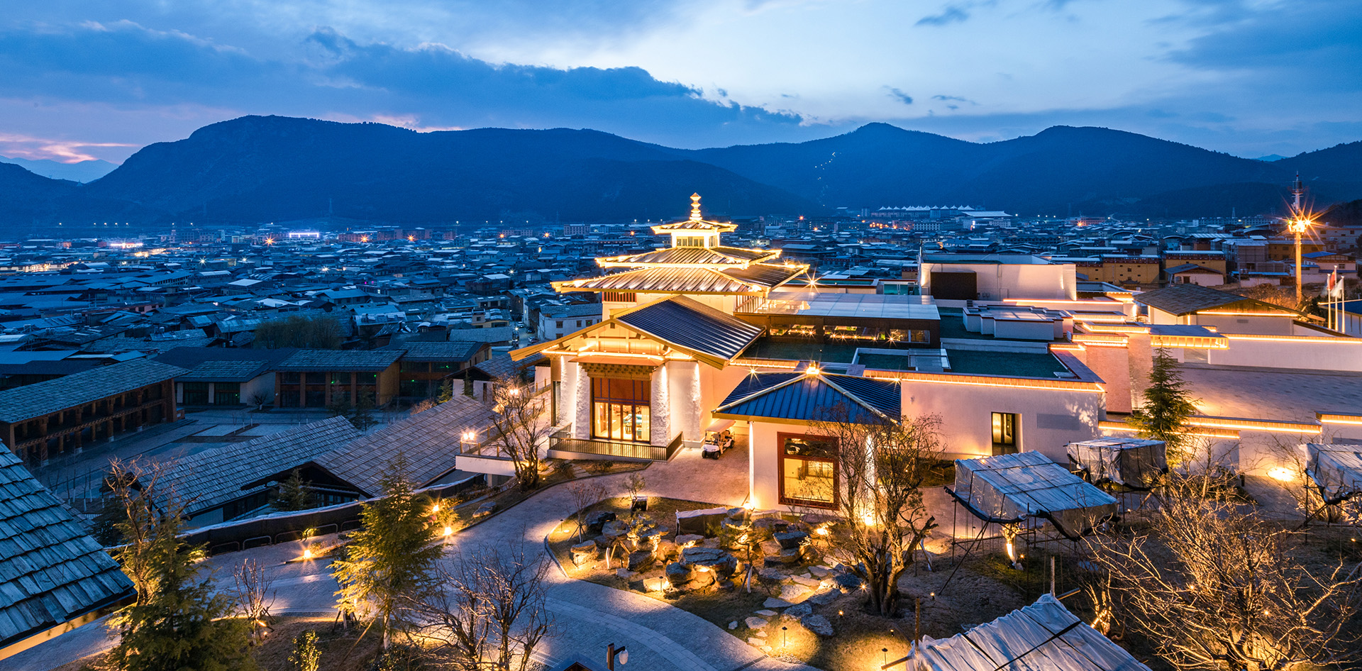 以古城+超五星级酒店(英迪格)+文化体验街区的全产业链带动整个香格里拉市及独克宗古城的旅游复兴。作为市级重点项目及发展战略性核心项目,整个项目以高标准、高要求、高投资为起点,作为藏式民族元素与现代功能建筑相介乎的典范,成为香格里拉的地标及典范项目。