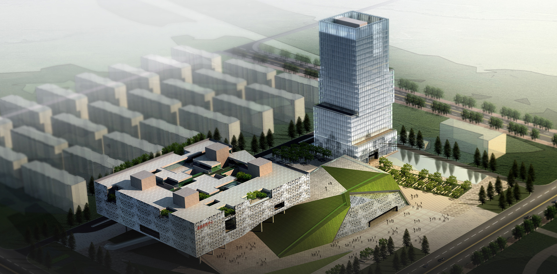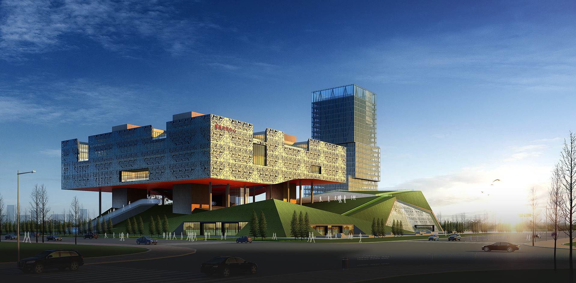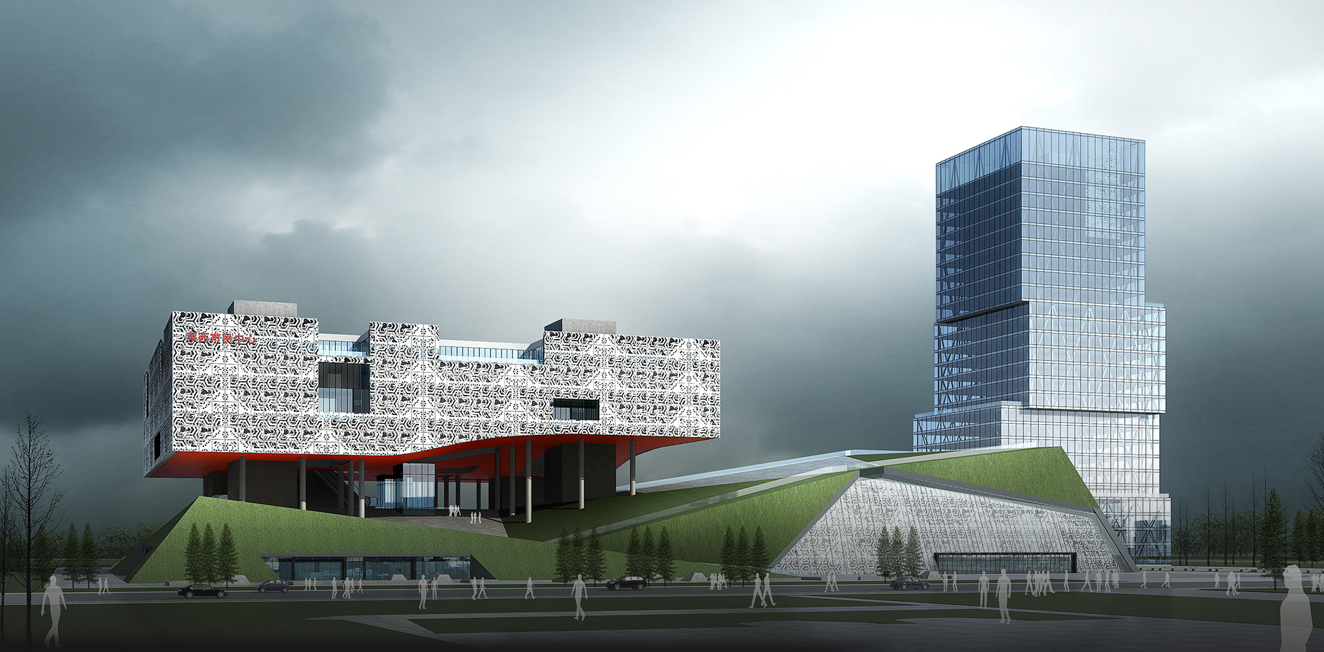 莱西市民活动中心设计灵感源于“航海方舟,文化之船”的概念,建筑形态以“航海方舟”的设计隐喻为出发点,取义于灯塔指引在大海浪潮中博鳌前进的文化之船。建筑体块分为三个部分,剧院与展厅形似海浪,文化方舟鼎力浪尖,办公楼寓意为导航的灯塔,典型的特色图景使建筑在凝聚着历史沉淀底蕴的同时也展现出积极挺拔的时代气魄。