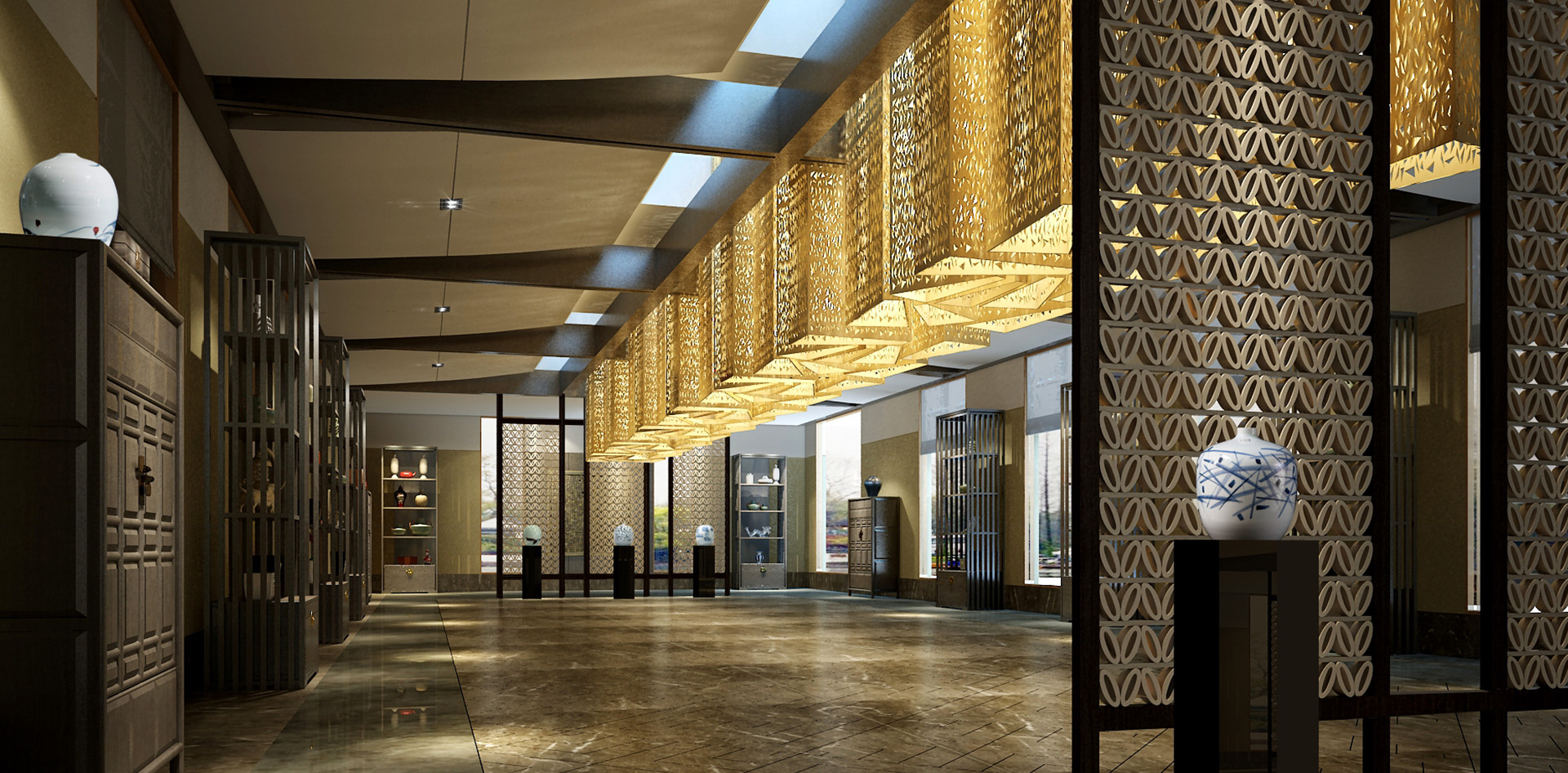 设计从“智者乐水、仁者乐山”的概念入手,将巴蜀文化整合当代自然风光,以巴蜀传统元素为符号,通过形材互融、情韵相通的手法阐述各个室内空间。