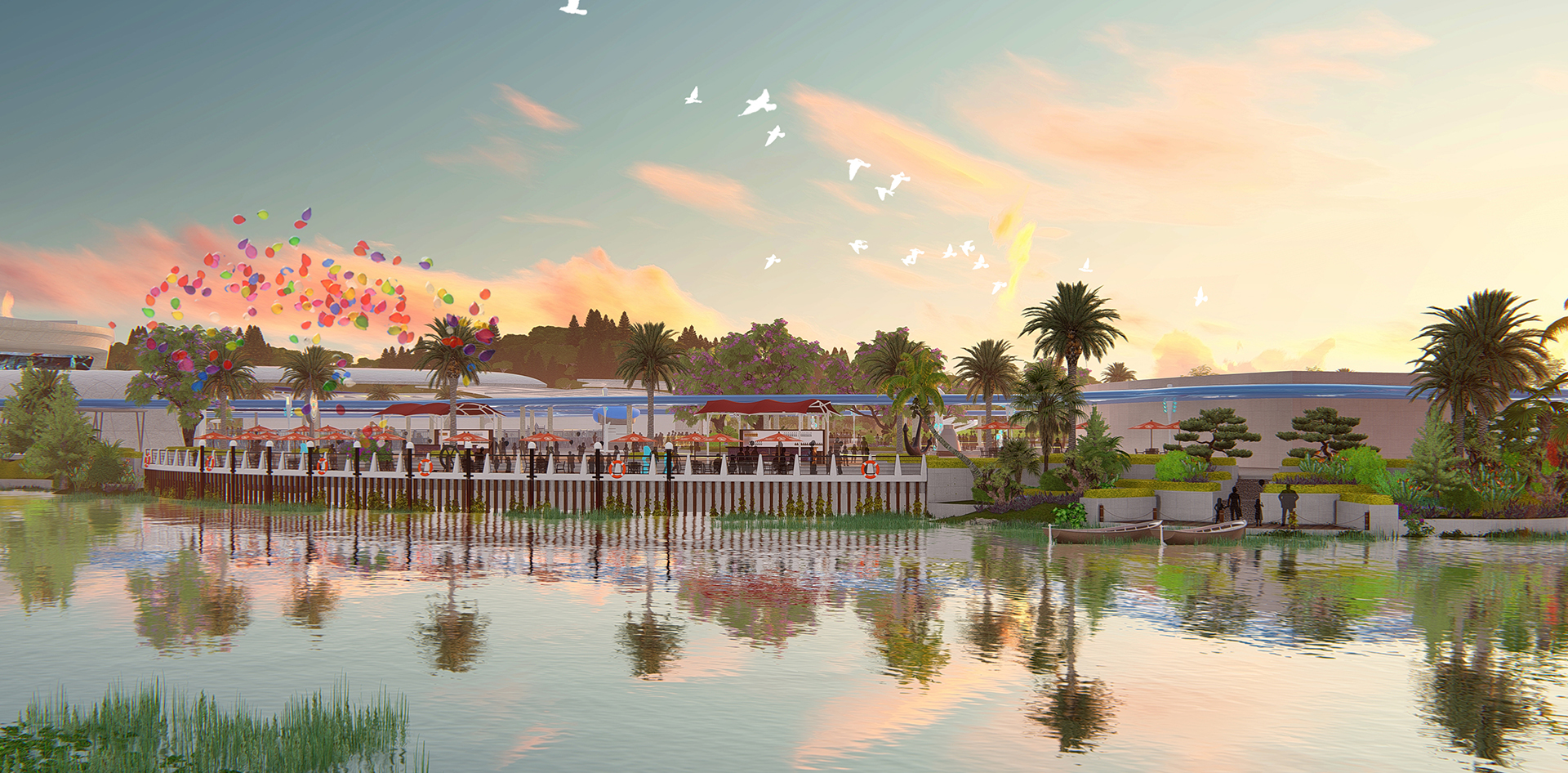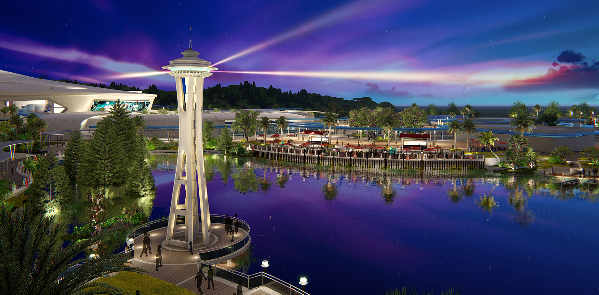 该目位于广东省珠海市,景观总面积约134210㎡。本设计借鉴国外优秀案例,以“现代码头”风情打造景观氛围,演绎从陆地出发,到达码头,登陆“海洋探索号”游历知识海洋的故事。景观设计延续建筑现代前卫的风格,以未来之“船”的概念形成整体构图,以极富动感的线条勾画景观细节;以海浪形成优美的曲线与渐变的沙滩、浅蓝的海水、丰富的海洋动物形象作为载体,融入景观当中。