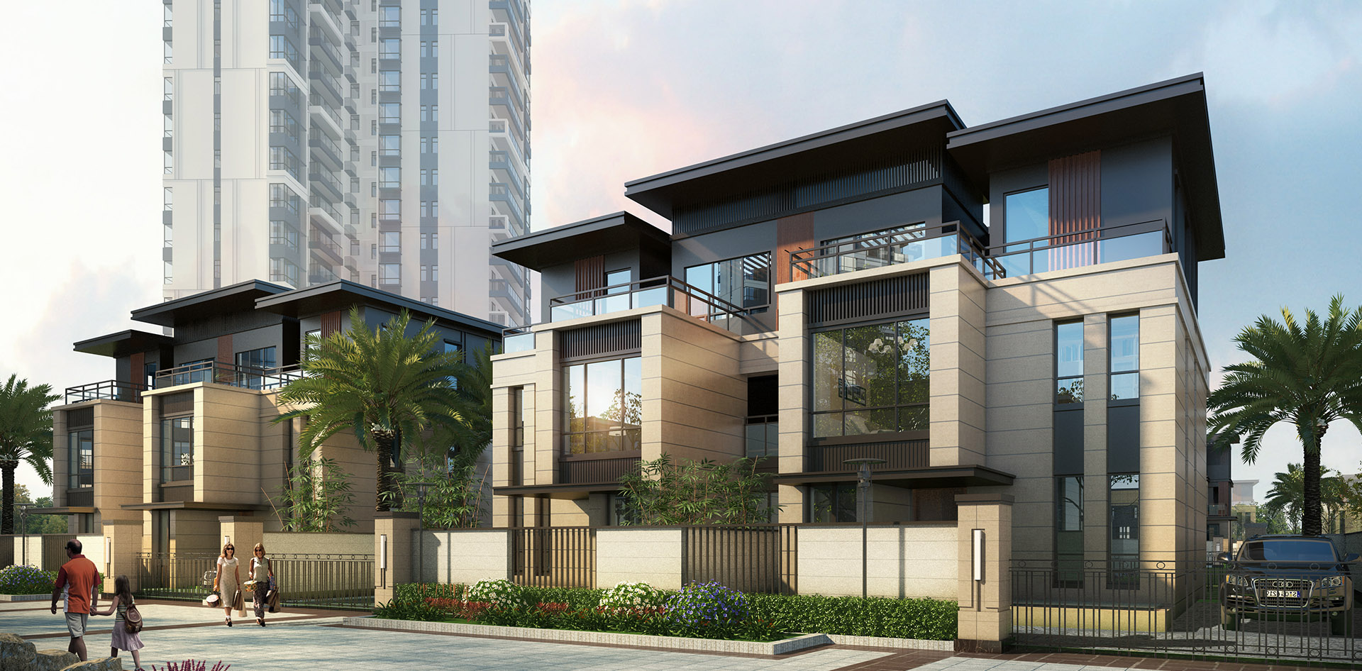 本项目由6栋住宅塔楼,34栋别墅,1栋社区服务用房组成,小区主入口在北边,次入口在东北边,小区是做到人车分流,地下室为2层。