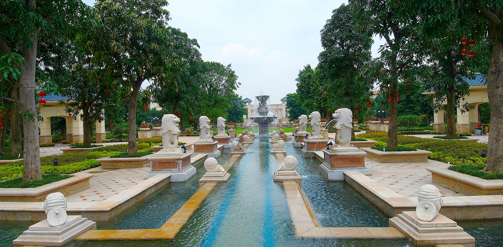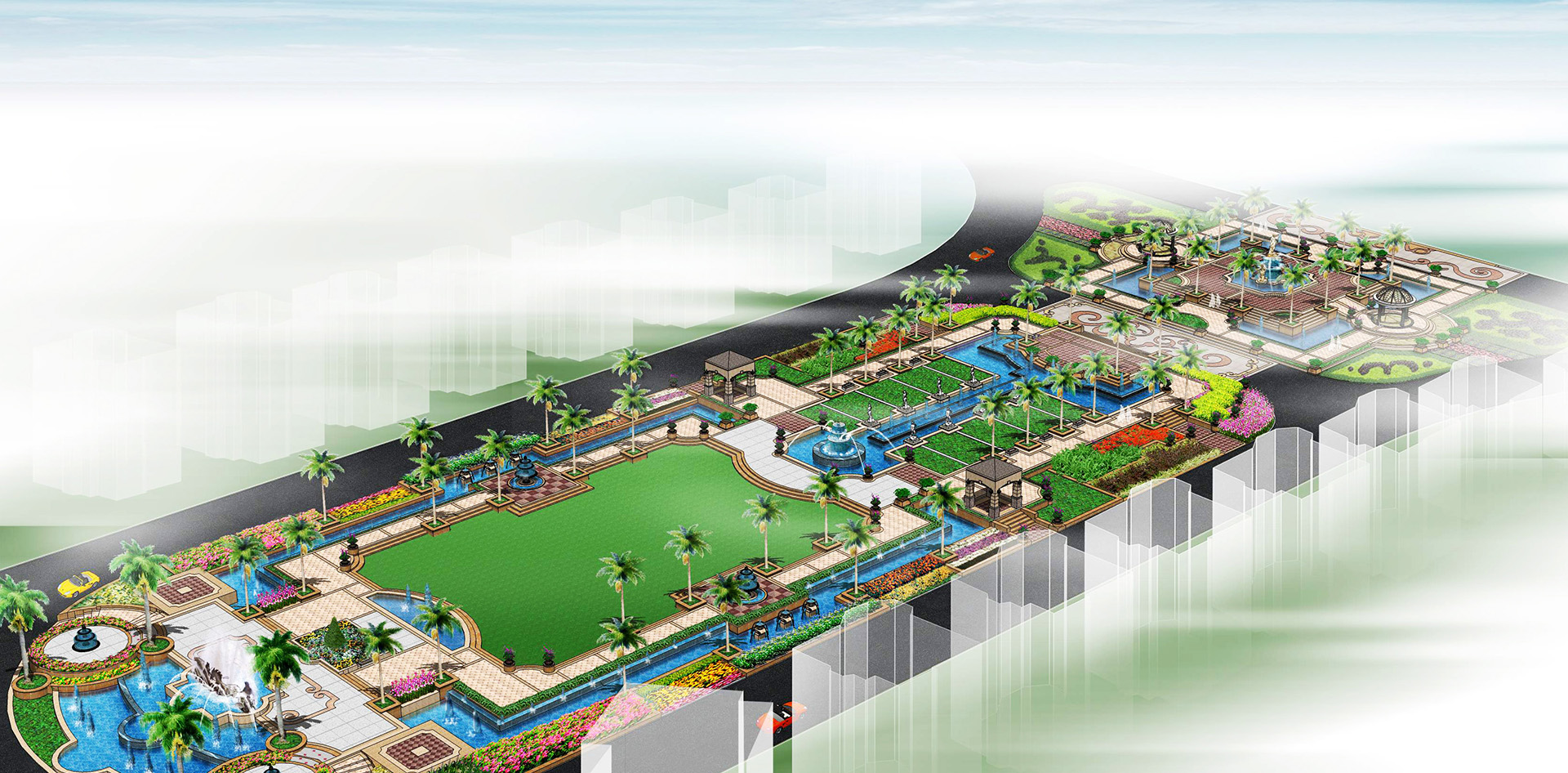 本项目定位“中国第一江景豪宅”,充分利用丰富的地貌资源,地势由滨江一线向内呈梯式增高,占有背山面水的地势资源,并且运用各种极具欧洲皇家园林风格的景观元素造景,营造一个充满浪漫情怀和欧陆风情的尊贵社区。设计中利用台地与下沉的处理方法,使得空间变化层次丰富,张弛有道,同时营造多个供主户休息、交流的空间,尽显小区人性化的一面。