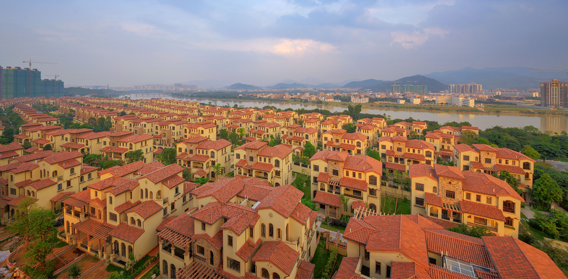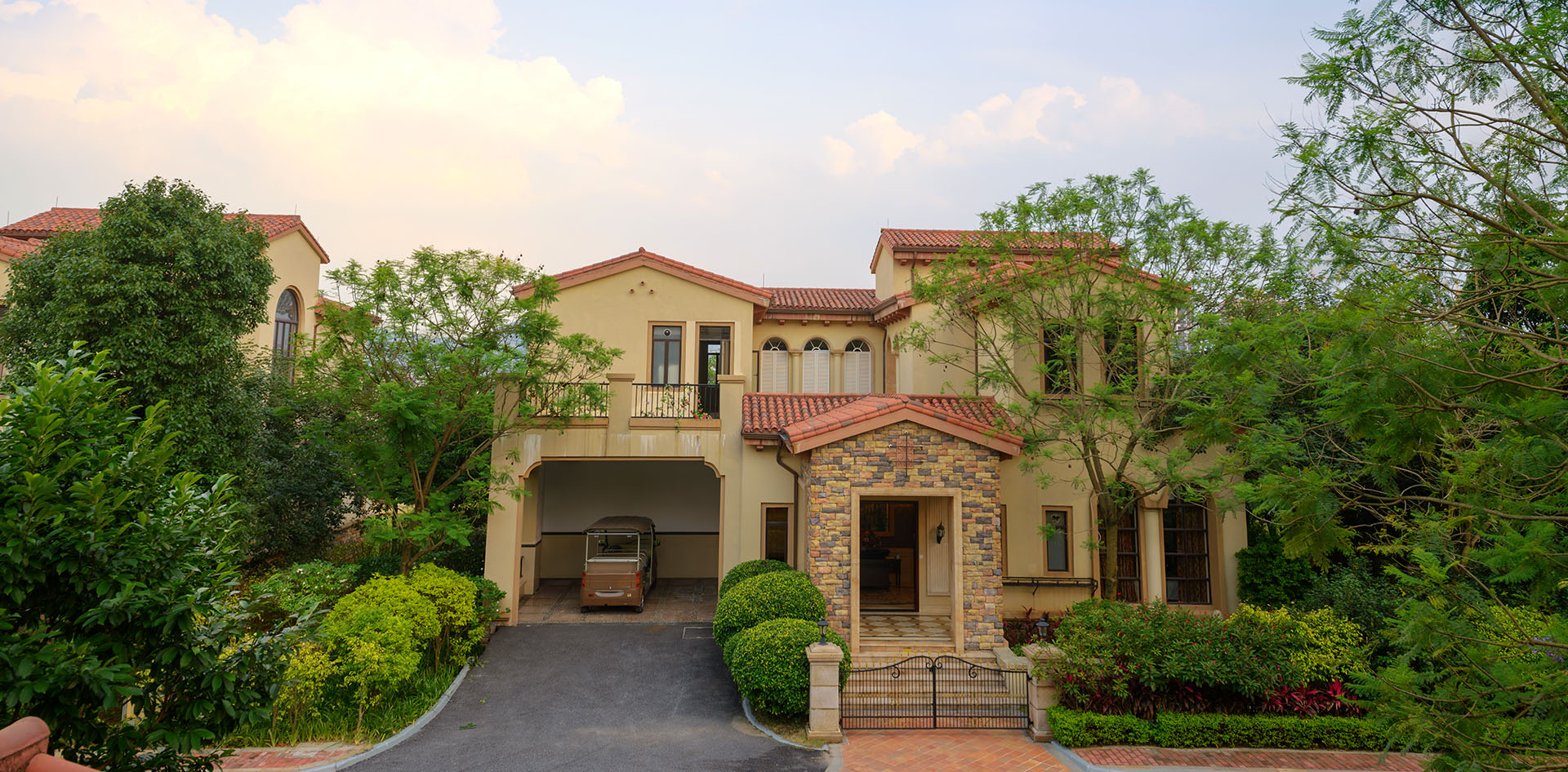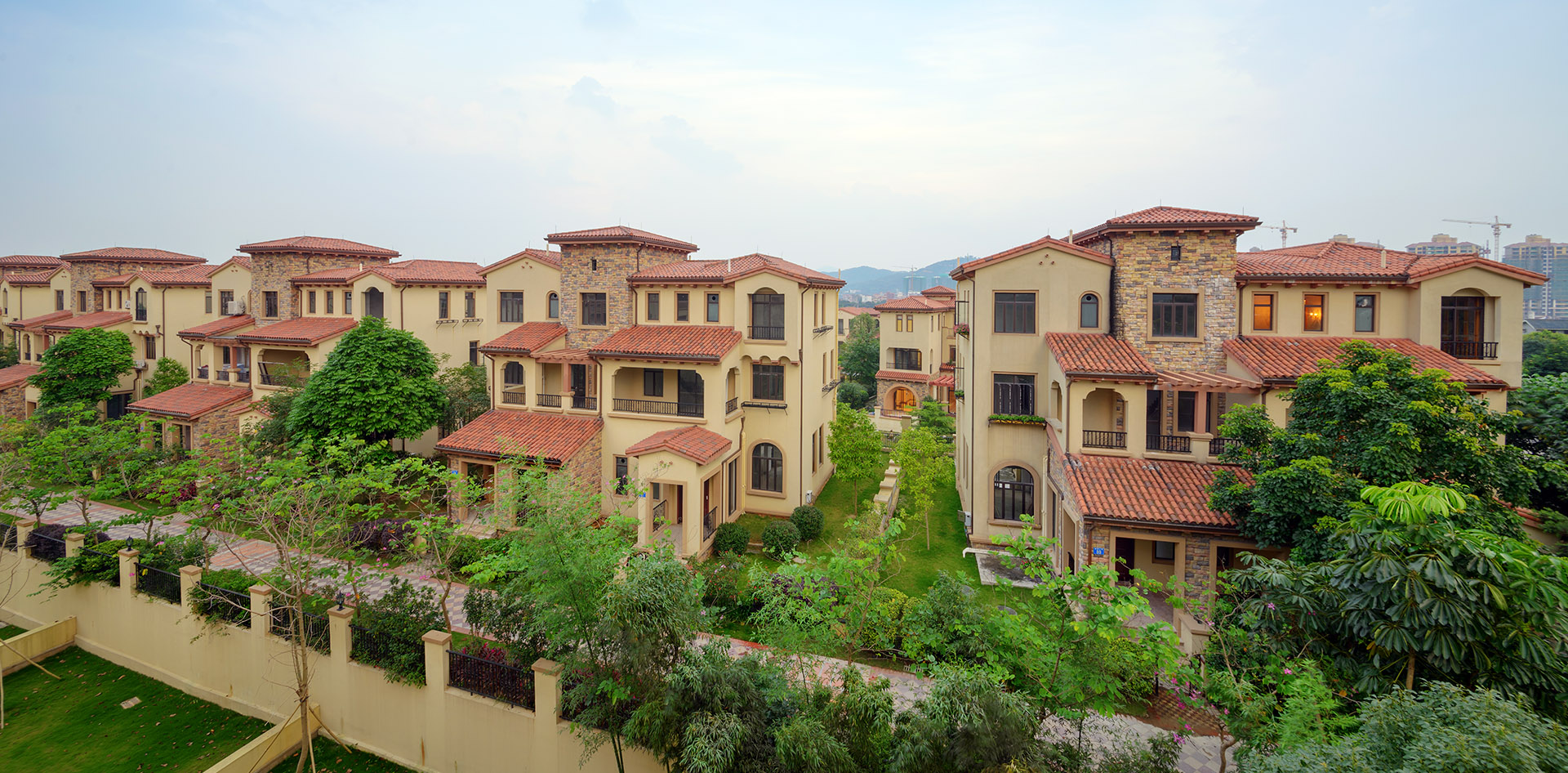 本项目位于位于广州从化市街口街大凹村、石潭村,规划用地成不规则条带形,拥有3.2公里流溪河。项目立面风格采用地中海乡村风格,拙朴、自然是设计最终方向,在立面设计中沿用地中海住宅独特的体块组合手法及色彩搭配,汲取该风格住宅中的典型元素,结合本地生活习惯以及气候条件,适当增大开窗面积。
