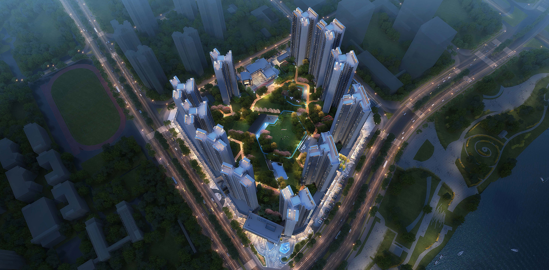 项目充分利用西向江景资源,创造宜居舒适而现代的江景住宅,同时保证沉睡视线通廊、风廊以及城市开放的空间的延续,内部道路实现人车分流,内部仅为景观步行路,最大限度的实现内部空间的安全和传承了传统民居的邻里气氛。