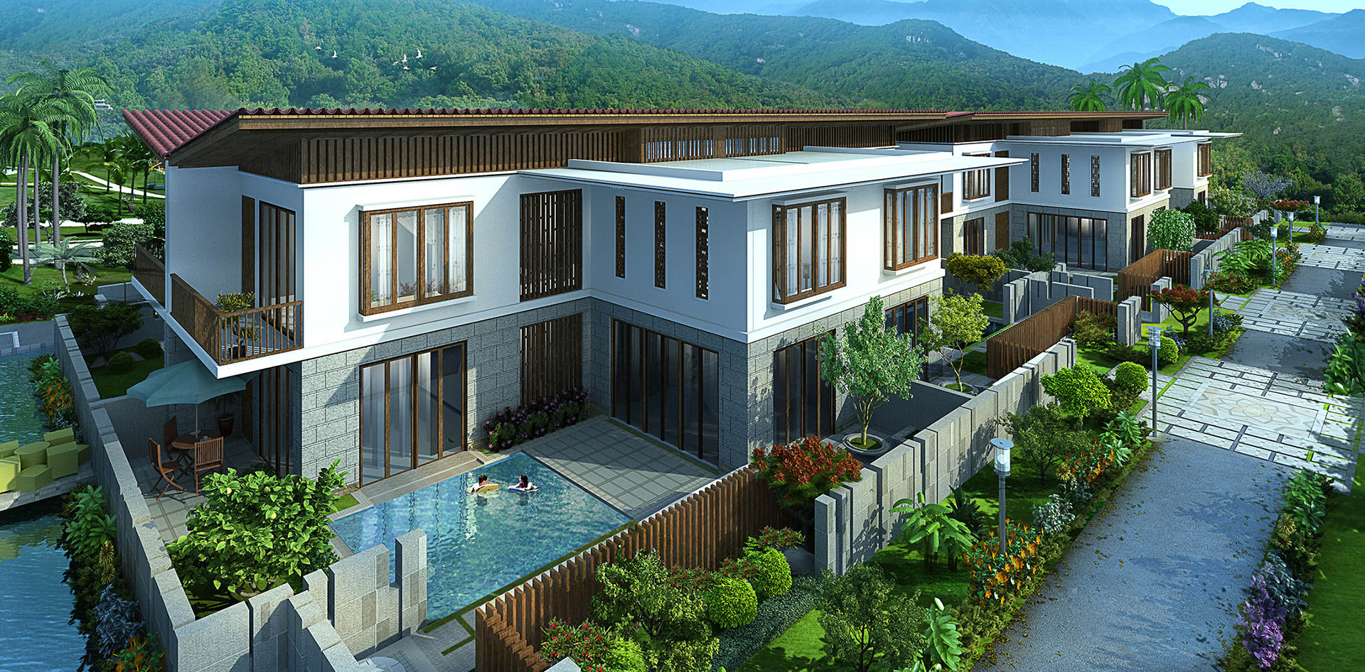 项目位于省级4A旅游度假区-花都芙蓉嶂度假区内,背靠王子山森林公园,面对芙蓉嶂水库,三面临湖,群山环绕。