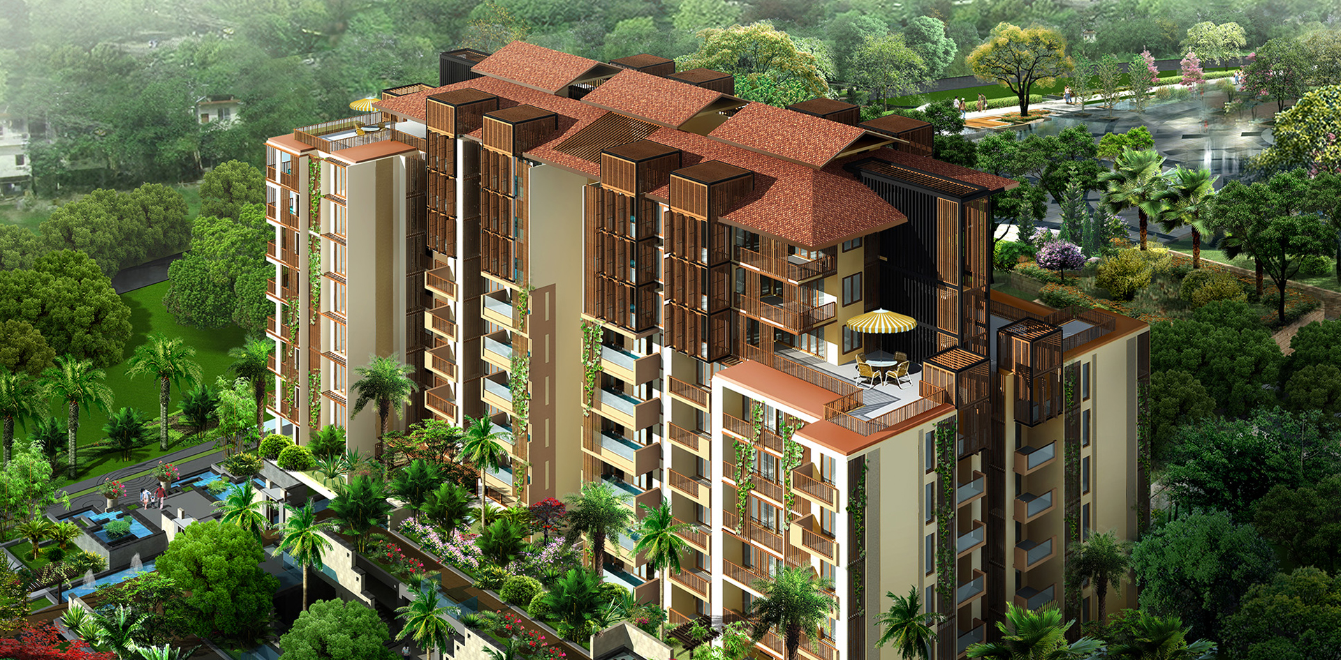 设计上使用了大量东南亚现代建筑元素,包括有落地大面积玻璃门窗、平板大挑檐、铝合金装饰格栅等。形体厚实大方、色彩朴素淡雅,立面上使用的大面积灰色铝合金玻璃窗及构架,既丰富了立面造型,也使得建筑室内空间采光良好、视野开阔,加强了人与自然的联系。在建筑细节上精益求精,力在处理好每一个细节。建筑形象挺拔简练、庄重大方,气度不凡。