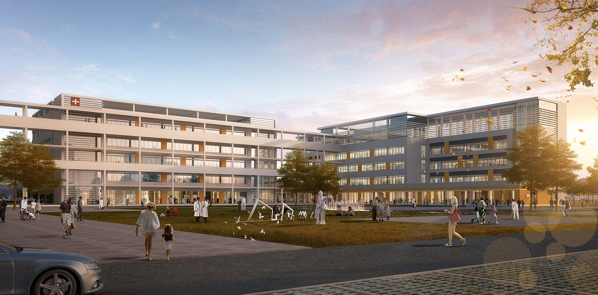 项目致力于为四会创建出一所省内一流的智能化医院。以自然舒适的空间氛围兼顾患者、家属和医护人员的体验,将空间功能和组织流线进行适当的融合与隔离,打造安全有效的医疗环境,也为医护人员提供一个优良的工作环境。