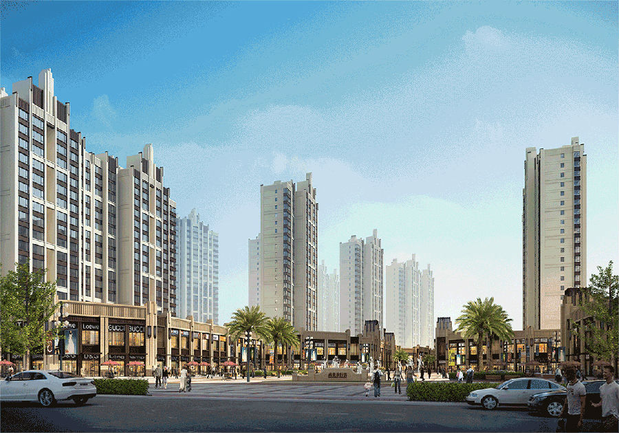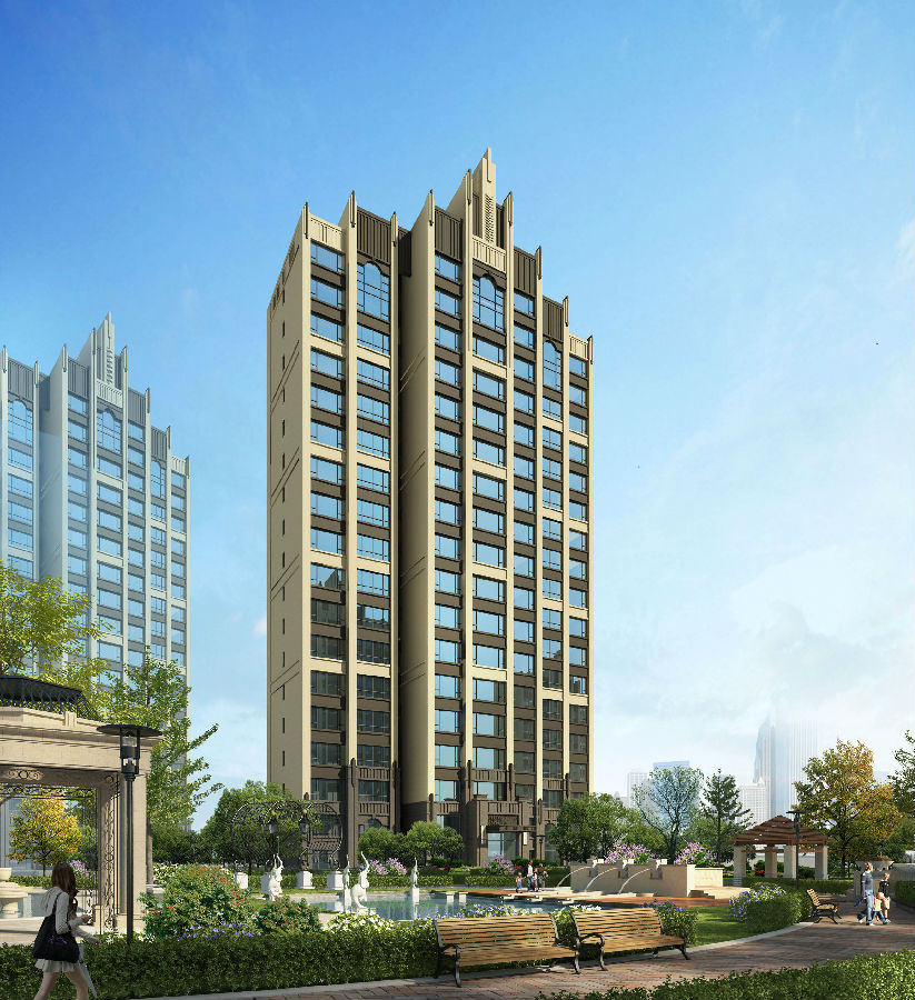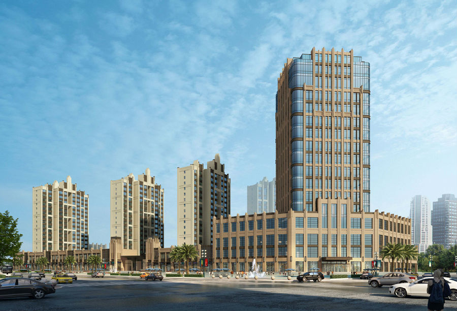 活泼、富于变化、商业空间生动的建筑体型,运用细腻、精致的细部和协调的比例关系,强调建筑垂直向上的挺拔感,充分体现装饰艺术派风格的精髓,营造出良好的视觉效果。结合现代设计手法,强调虚实对比,既为建筑内部创造了明亮、开放、健康的空间,又形成鲜明多维的视觉效果,打破古典欧式风格带来的空间凝重感。