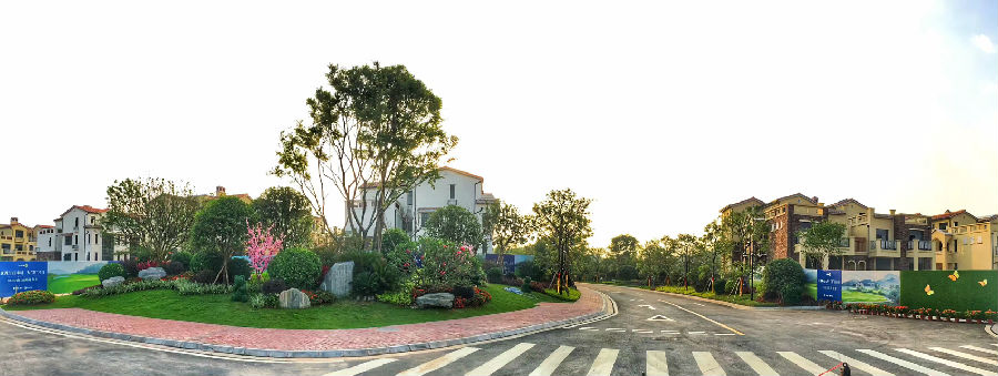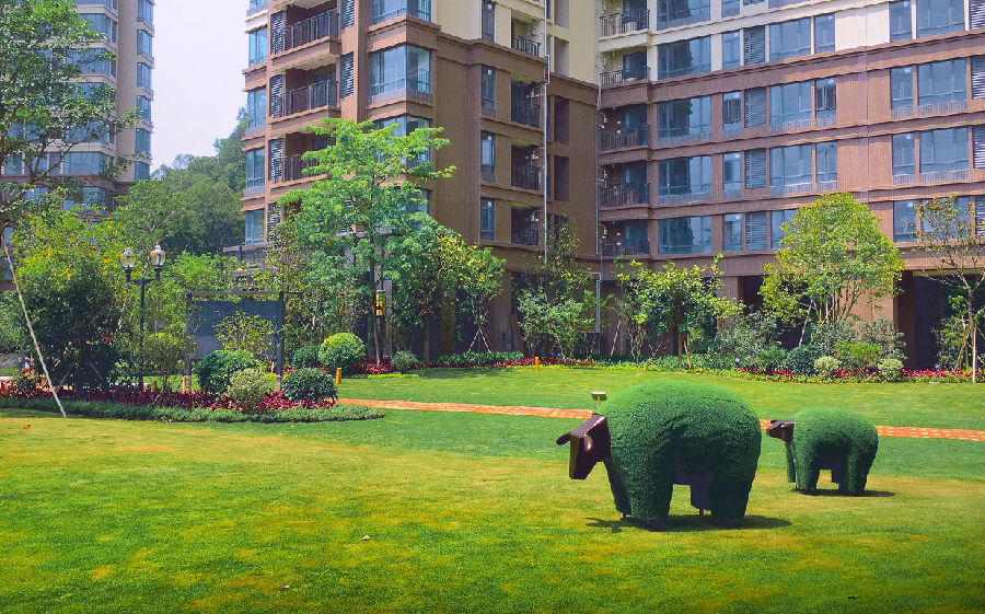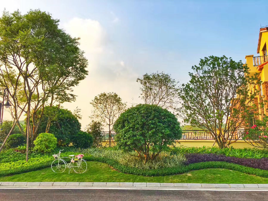 园林景观中的轴对称空间布局,采用点、线、面结合的手法,营造有品位的生态社区,创作出动人的人居环境。在空间划分上兼有阵列感强的轴线空间和自由式的宅间组团空间,“形散神聚”、舒闭结合的整体布局。绿草、鲜花、大树如繁星般点缀在园林,移步异景,浪漫之外,也蕴藏大美之境。地形换空间、植物造空间,能给人建筑生长在园林内的错觉。园区的植被疏密结合,景观空间错落有致,感受到城市中源自园林深氧的问候之余,感受东方美学生活。