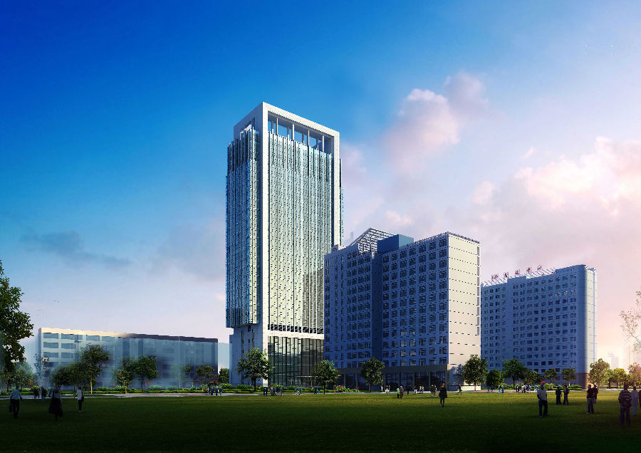 为给患者提供便利,医院在功能分区上既能独立运作又方便连通,遵循洁污分区、动静分区的基本原则,考虑城市的主导风向,规划将用地西南角下风向区域作为传染病区,东北角区域设置为行政后勤办公及科研教学区域,行政主楼面向东侧主入口方向,形成功能完备的建筑构造。基地中部设置医疗区,分为急诊、医技、住院、肿瘤治疗中心和手术中心。利用医疗区、行政后勤区和传染区之间的建筑空间形成三个较大的绿化生态庭院,让患者心情更加愉悦,医护人员工作氛围更加轻松。