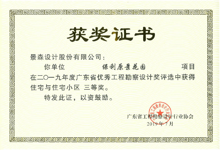 的保利原景花园和金怡城市花园项目荣获住宅与住宅小区类三等奖。