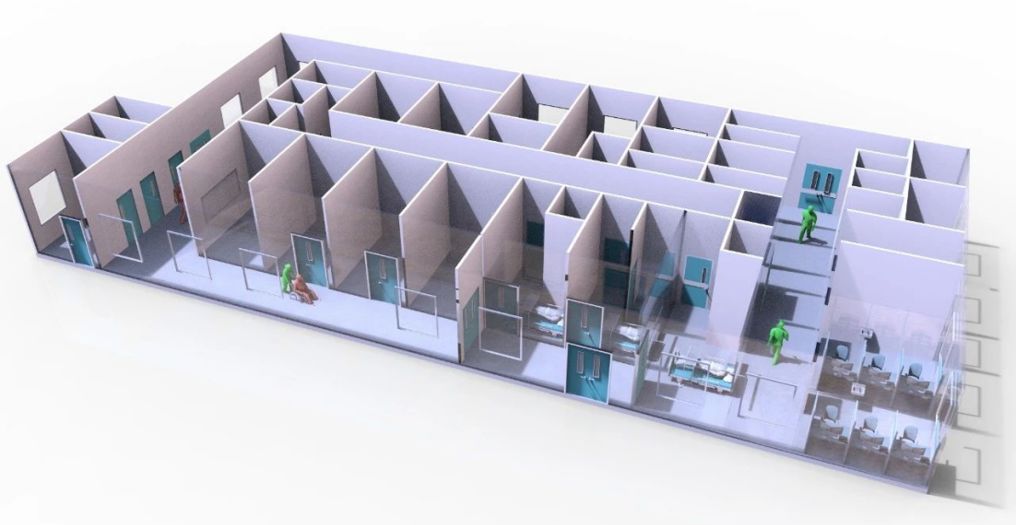 装配式建筑快速、安全、精准的优势大大提高了病区建造的效率,为救治病患赢取了宝贵的时间。在此次项目中,团队采用方便运输的集成房尺寸模数进行装配式模块化设计,将病房、卫生间缓冲、污物、医护卫生分为若干模块设计,通过工厂化生产,实现现场快捷组装;同时以装配式模块化颠覆传统模式,采用独有的标准化体系,提升装配建筑质量和安全系数的同时,减少材料和能源浪费,大大缩短建筑工期;通过整合设计、生产、施工等整个产业链,实现建筑产品节能、环保、全生命周期价值最大化的可持续发展的新型建筑业态。