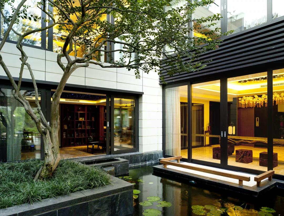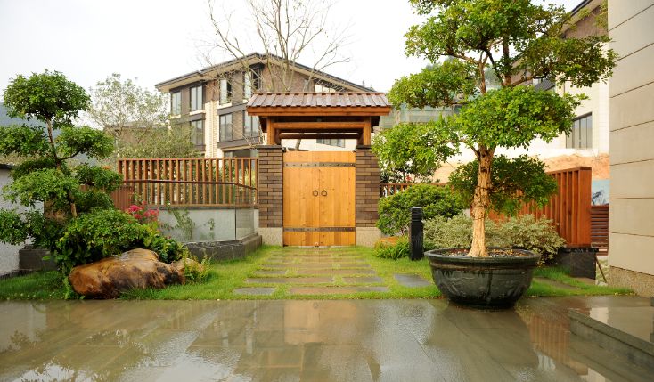 涧谷幽静,流泉水深。以原生树、坡地、流水、竹、自然石等一系列自然符号,拼贴出黛墨山岩舞流溪的山水意境,搭配一袭和风,点睛城市风景,而且靠还原一份几近遗失的——画意诗情。