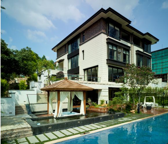 园无石不奇、山无水不秀。秀园得天独厚的自然山水环境,营造悠然自得的庭院生活空间,最大化丰富别墅的自然景观资源,屋内移步换景,处处可与自然亲密接触。