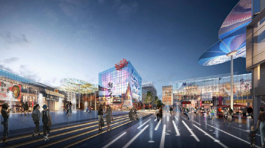 商业区——设置复式型的商业内街,更新城市的新形象,打造轻奢的体验型商业街。