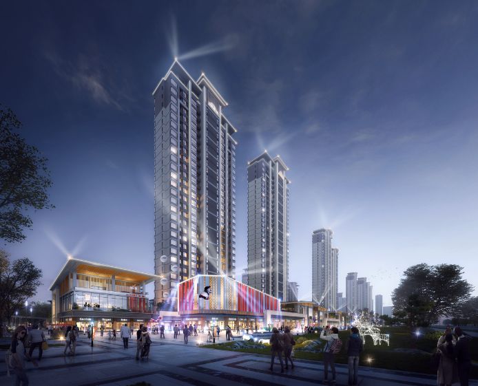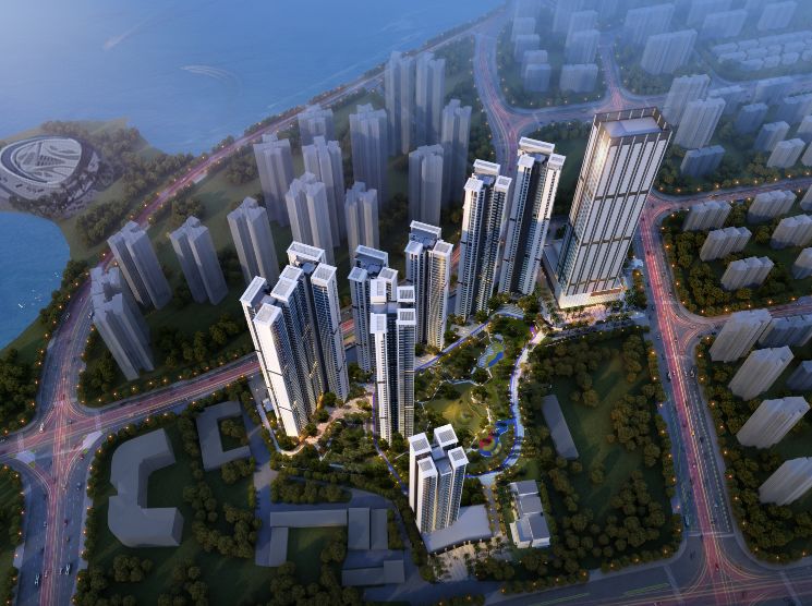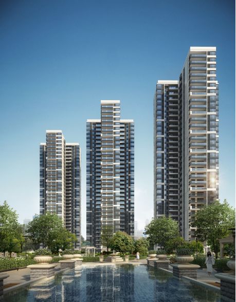 高层住宅区——东西两侧的住宅旋转20度摆放,错开遮挡,为每户都创造优质的景观视线。