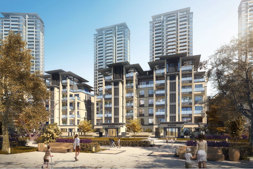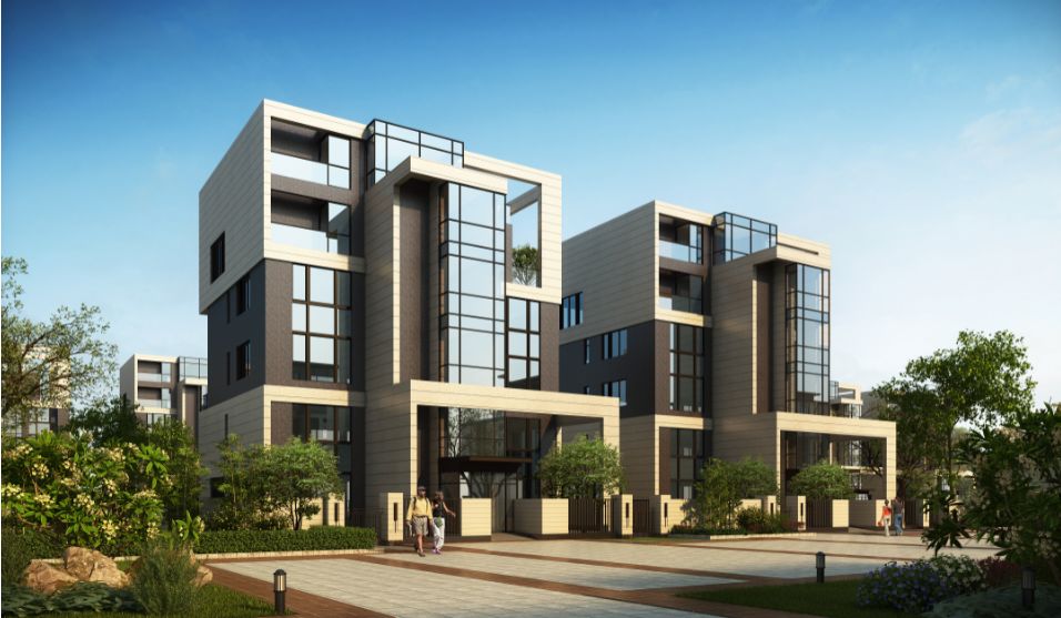 多层洋房区——设置水景与高层相隔,利用场地的高差关系,创造更加私密的居住空间。