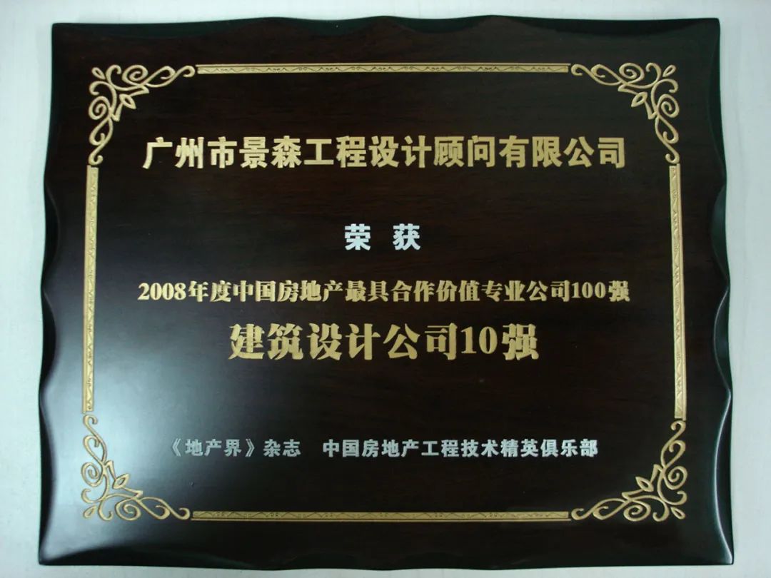 荣获2008年度中国房地产最具合作价值专业公司100强。
