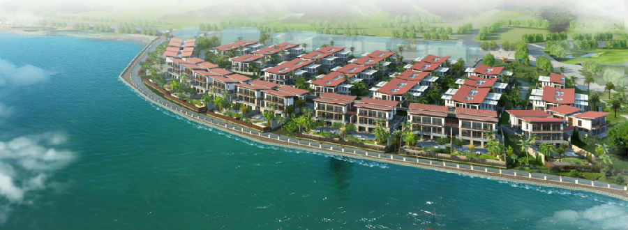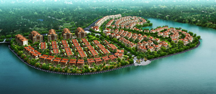 项目地块呈半岛形状,有近两公里的岛岸线,南、北、西三面靠湖部分地块较低,中间及东部地块较高,呈坡地形状。