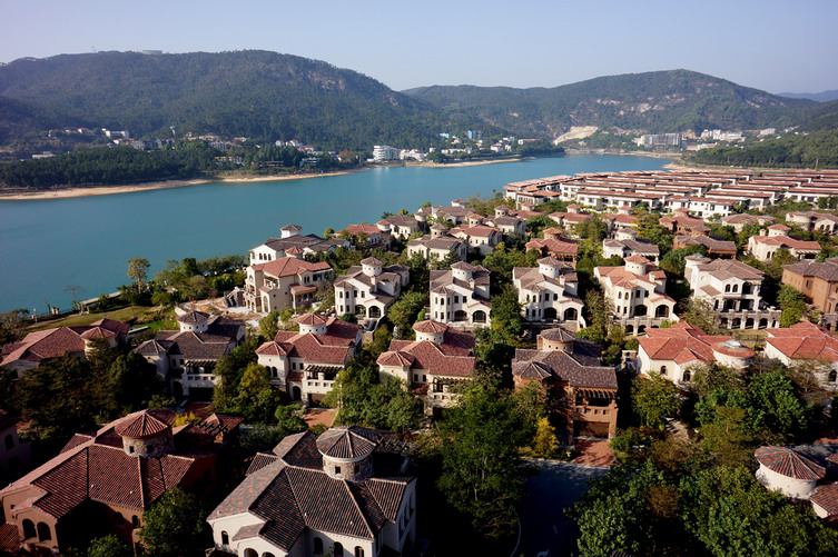广州兰乔圣菲位于广东省级4A旅游度假区-花都芙蓉嶂度假区内,背靠王子山森林公园,面对芙蓉嶂水库,三面临湖,群山环绕。