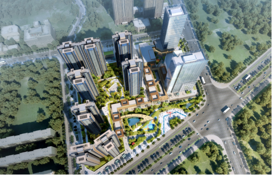 设计团队在小区住宅的规划设计中,将小区住宅面向城市打开,引入城市绿地公园,使小区景观与城市绿地公园进行合并。同时突破传统思维,将绿地公园打造成为市民休闲娱乐的好去处,并且与项目西边的商业地块联动,聚集人气。