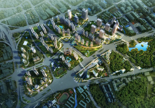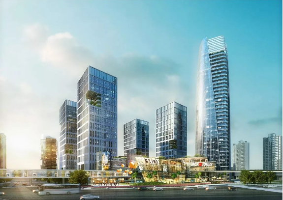 在项目确立之初,规划提出:项目用地划分为六个地块,将打造成为购物中心、酒店、办公、住宅于一体的区域性中高端城市综合体及花园式住宅小区。从基地及周边地区的整体环境出发,探索建筑在交通组织、地域标志性、城市综合体建筑形象等方面的形态生成因素,力求创造一个鲜明个性、现代、高效,体现现代综合体建筑特色的城市建筑形象,为整个陈田村带来崭新的标识。