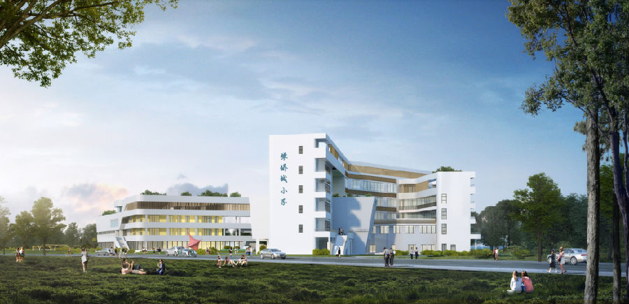 设计者依托得天独厚的景观资源,引入“新式教学楼”设计风格,结合现状地形,平地布局,通过花园分隔各建筑,形成立体绿化活动平台,让每间教室都有自己的 “私家花园”,极力打造一个“山水花园 " 式园区,让祖国花朵在自然环境中学习成长。