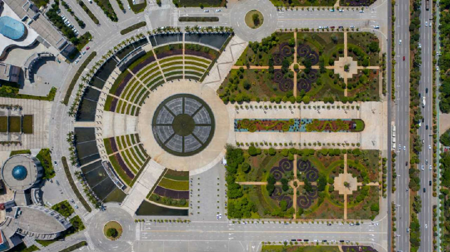 深谙孔学之道的“三角搭接”构架,寓意“相互交错、连结,周而复始,沟通交流”。