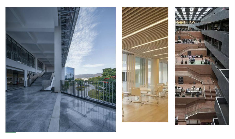 3.设计师以现代化、信息化、智能化、生态化的思维创作模式营造出尽可能多的公共交流空间,可授课、可休憩、可围坐讨论、可思考看书。
