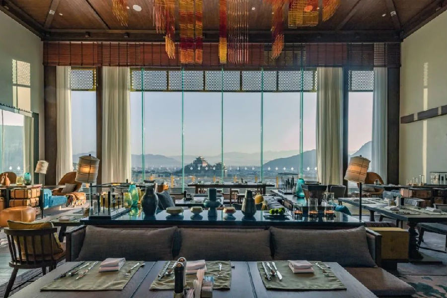 层叠不尽的递进空间不仅在路径上有了起承转合的实际用途,更是让每一位宾客体验到独特的似有似无的藏族建筑对坛城隐喻性表达。这样的独创设计在全球范围都是稀见的。