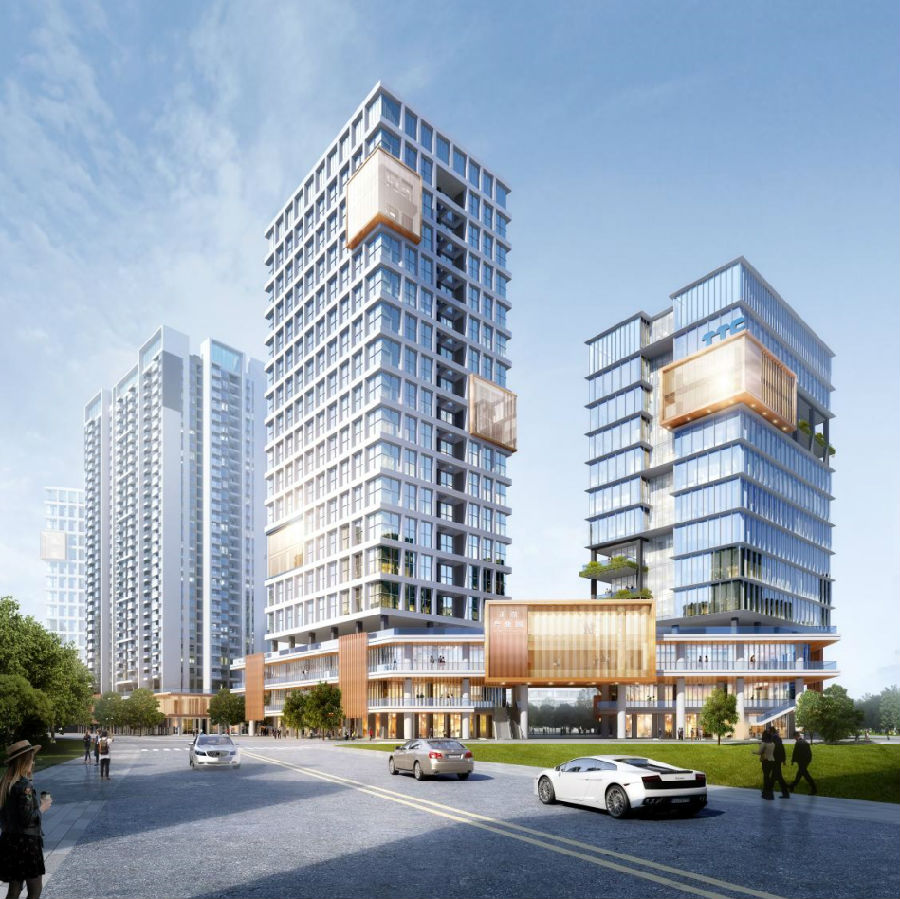 · 研发厂房 双核心筒布局可将每层灵活划分两个产权单元,满足独角兽及高成长企业需求,共享空中平台为企业提供更多交流机会,激发出更多科技火花。设计师从“芯”外形中提取网格元素,融入到高层厂房外立面中,蕴意着芯片产业的欣欣向荣态势。
