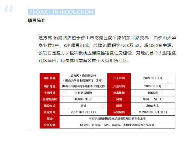这一项目为建方寓·佛山怡海路店(佛山市天华商业楼酒店2座、3座项目)。据悉,居住在本项目的住户,将享受民用水电气等优惠政策。