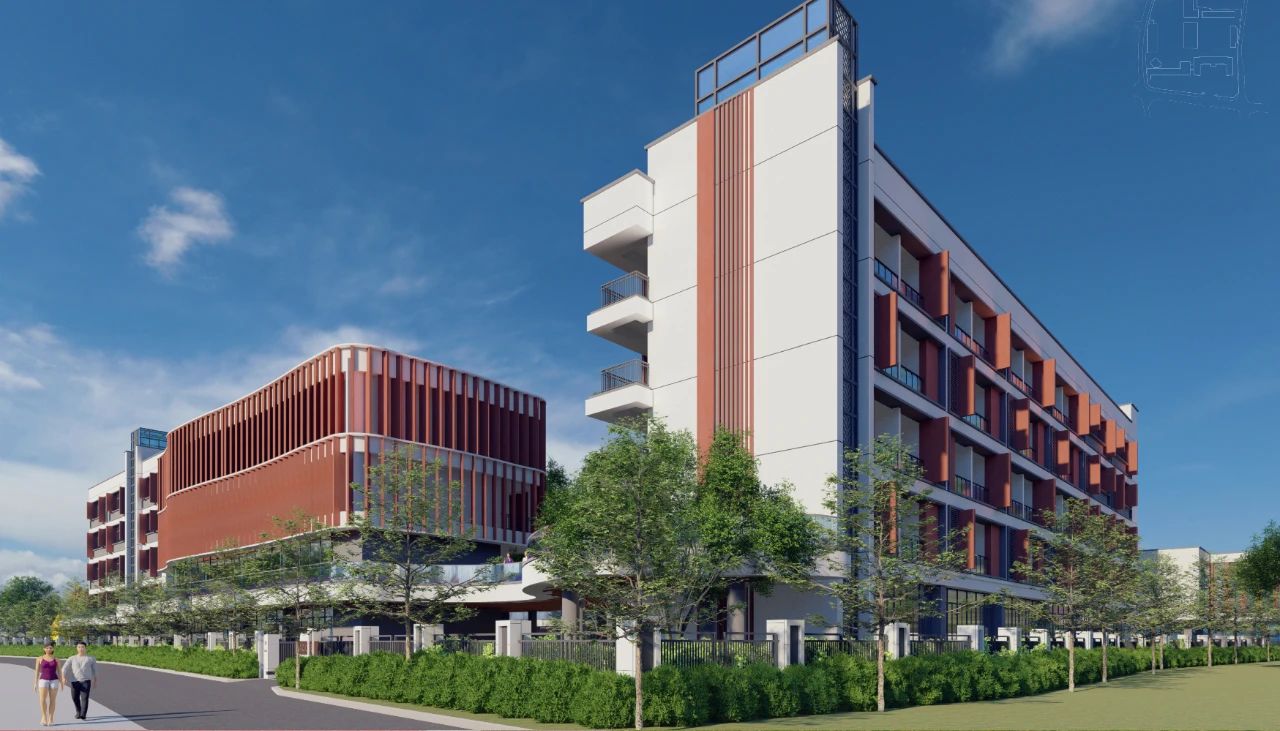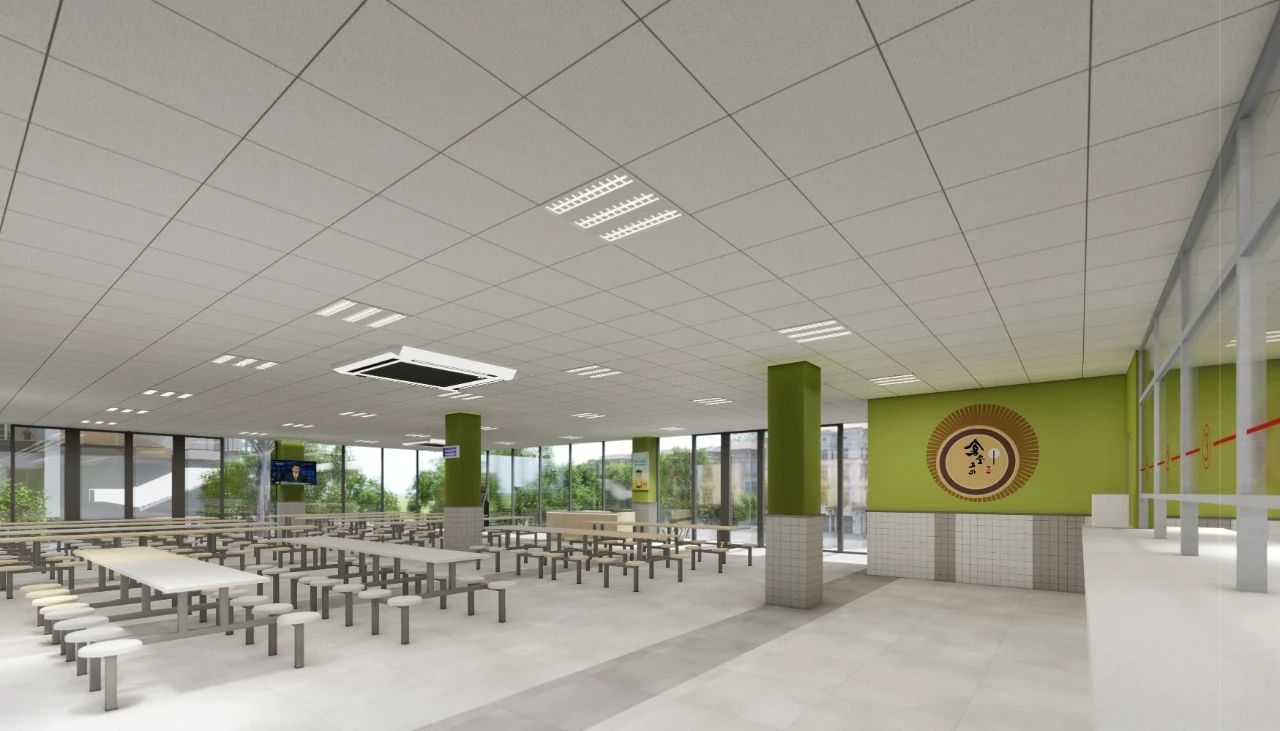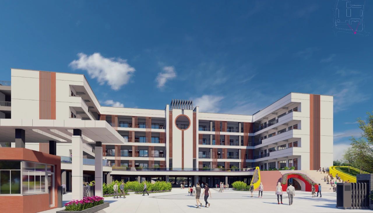 可以串联新建筑和原有建筑,实现学校新建建筑与原有建筑在文化历史传承和建筑的融合。同时,在原有活动场地基础上增加一层平台板活动场,增加户外活动面积。