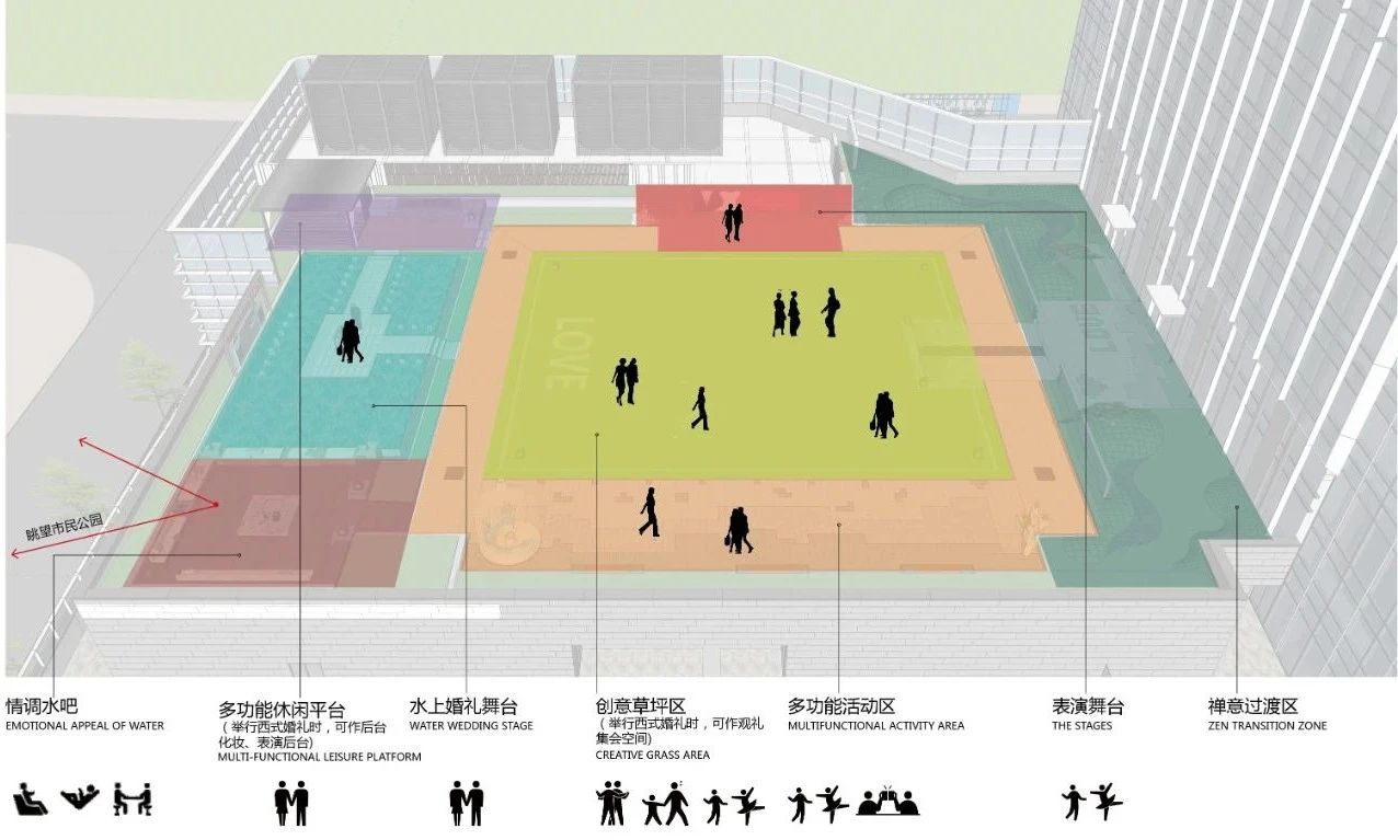 景观位较好的地方设立打造天台花园多功能休闲木平台,活动聚餐、Party承办、特色餐饮等,可移动设施,灵活多变的空间,提升场地的价值。